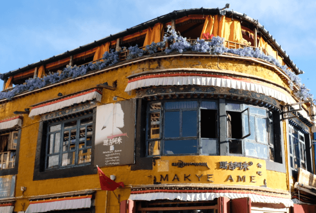 西藏拉薩大昭寺的八廓轉經道東南角,一座黃色的藏式土木建築格外醒目。瑪吉阿米是一家以尼泊爾、印度、西藏風味為主的餐廳。總店設在西藏自治區拉薩市八廓街的東南角。餐廳帶有濃郁的藏式風格,二樓有藏族歌手在吧臺旁獻演節目,客人以外國遊客為多。