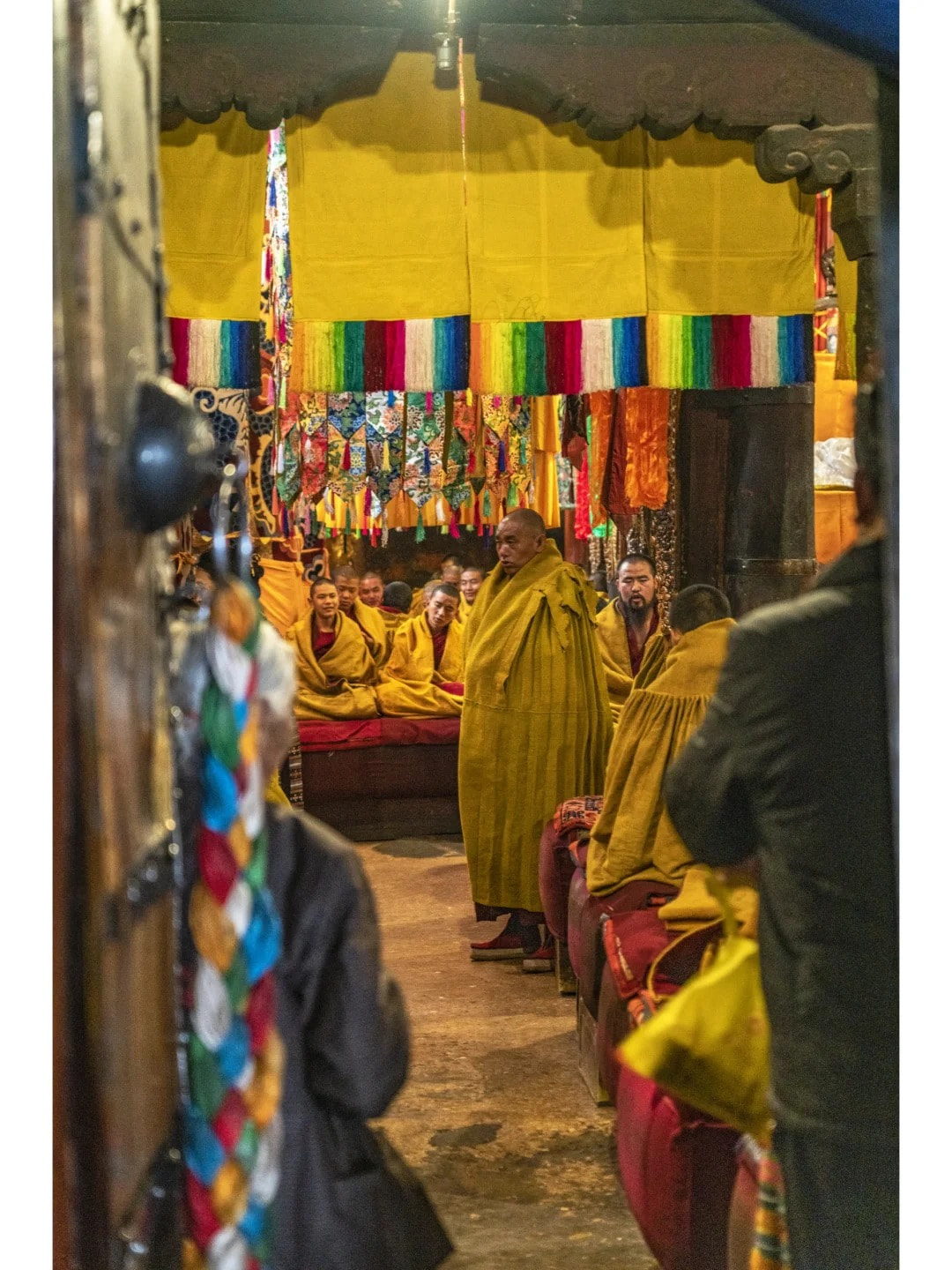 措欽大殿的深處,有一個小殿,牆上供奉著一世達賴根敦朱巴留下的腳印石。僧侶會取下腳印石,將其放置在每位同胞的頭頂,進行加持祈福。對於藏族人民而言,這是最神聖的時刻。
