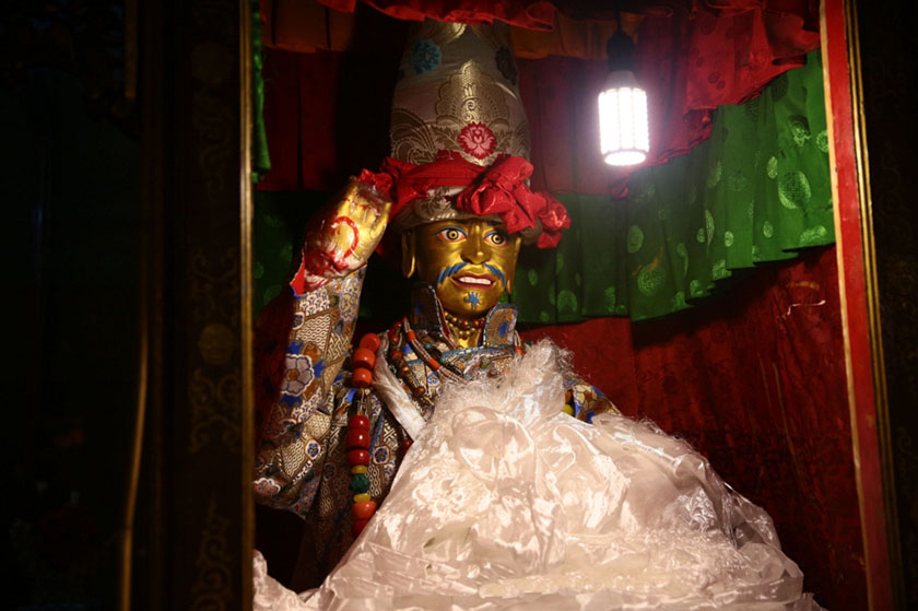 西藏扎基寺的“財神爺”在藏語里被稱作“扎基拉姆”。據說,這是拉薩城的護城法神“吉祥天母”在世間的化身,本在漢地,后隨一位漢地的色拉寺大師來到拉薩,然后被供奉在扎基寺。扎基寺的財神菩薩是西藏最靈驗的,但凡求財的人都來這里供奉“扎基拉姆”。因此,扎基寺便被認作是西藏唯一的財神廟。